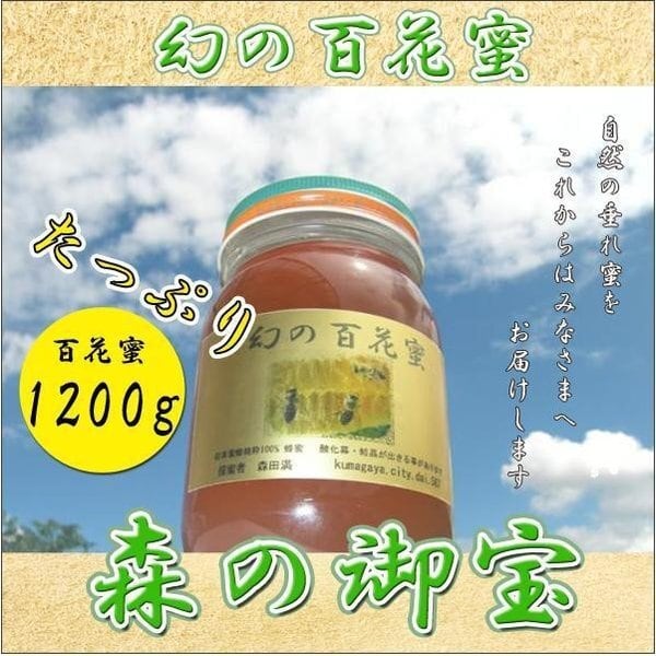 信州 安曇野産・日本ミツバチの蜂蜜(ハチミツ)はちみつ・幻の百花蜜の天然垂れ生蜜「森の御宝」1200g